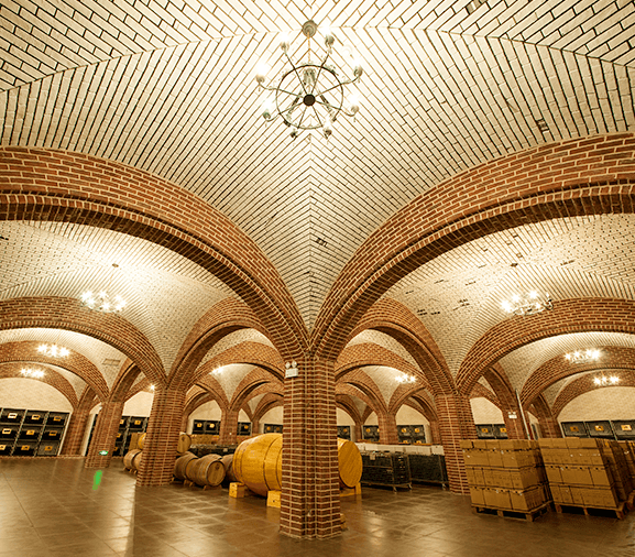 建筑面積4528㎡,東西長(zhǎng)120米,南北寬40米,建筑高度14.8米,是整個(gè)酒莊的靈魂,它功能主要有葡萄酒生產(chǎn)釀造存儲(chǔ),以及人員辦公和游客參觀游覽。