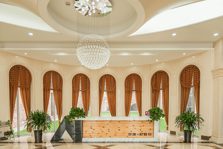 展覽館設(shè)置上人屋面可以布置綠化作為屋頂陽臺(tái),俯瞰整個(gè)酒莊盡收眼底。誼盛軒室內(nèi)裝飾設(shè)計(jì)理念為:友誼與輝煌。